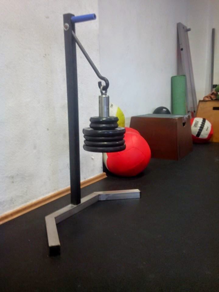 Erőkar. A kart és a fogantyút összefogjuk. Lehet vele dolgozni ismétlésre és tartásra is. A préselőerő fejlesztéséért. A terhelést további tárcsák hozzáadásával lehet növelni.
